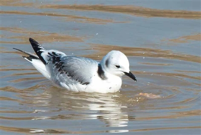 這是一只身體雪白,但有幾點(diǎn)黑色(嘴黑、腿黑、尾也黑)點(diǎn)綴的美麗精靈,在寧湖濕地公園,它時(shí)而悠閑地在水面游弋,時(shí)而俯沖進(jìn)水面捕魚。經(jīng)西寧市觀鳥協(xié)會負(fù)責(zé)人王艦艇判斷,那是一只三趾鷗,是一種海洋鳥,它現(xiàn)身西寧,是極為罕見的。