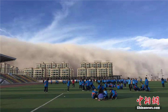 11月25日,甘肅張掖沙塵暴來襲,“沙墻”高達(dá)上百米,伴有7至8級大風(fēng),張掖消防啟動應(yīng)急預(yù)案。高繼文 攝