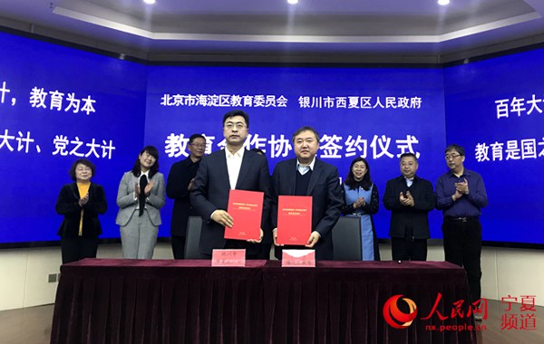 11月28日,京銀教育合作簽約儀式在銀川中關村創(chuàng)新創(chuàng)業(yè)中心舉行,北京市海淀區(qū)教委和銀川市西夏區(qū)人民政府簽署了教育合作協(xié)議;北京市中關村中學與銀川市中關村中學簽署了結對共建協(xié)議。