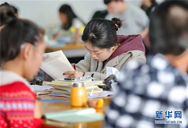 12月20日,在位于河北省秦皇島市的燕山大學(xué),備考考生在學(xué)校圖書館復(fù)習(xí)。 2019年全國碩士研究生招生考試將于12月22日至24日舉行,廣大考生積極備考,進(jìn)入最后的“沖刺模式”。據(jù)教育部數(shù)據(jù),今年報(bào)考人數(shù)達(dá)290萬。 新華社發(fā)(曹建雄 攝)