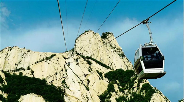 其實,而今作為旅游勝地的華山,已不似古人所記所述,登山道路平整而闊,道旁鐵鏈?zhǔn)瘷谙嘧o(hù),已無危險之虞,可謂“險而無危”。如今,登頂華山的方式也已經(jīng)不止步行登山了,索道的建成使更多游人登頂華山的愿望成為現(xiàn)實。