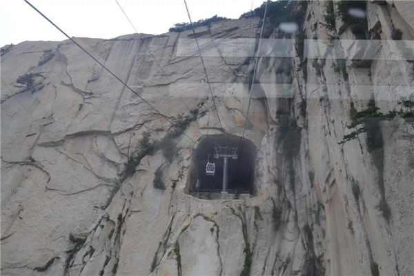 現(xiàn)在爬華山可不是“自古華山一條道”了,我們選擇坐西峰索道纜車,凌空飛渡千山萬壑。說是千山萬壑,其實華山是由一塊完整碩大的花崗巖石體構成的?!渡胶=洝酚涊d:“太華之山,削成而四方,其高五千仞,其廣十里。”真的很難想像,這么連綿起伏、巨大的山體,其實是一個群峰競秀的整體。華山,就是這么神奇!