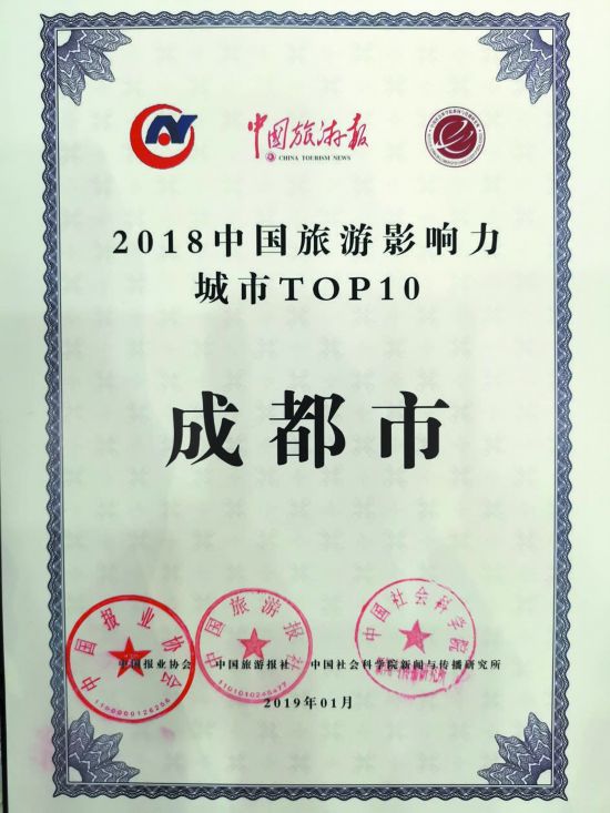 經(jīng)文化和旅游部批準(zhǔn),1月23日,以“新時代新視野新傳播新動能”為主題的2019中國旅游產(chǎn)業(yè)發(fā)展年會在京舉辦。文化和旅游部黨組成員、故宮博物院院長單霽翔作了《文旅融合的故宮實(shí)踐》主題演講,文化和旅游部黨組成員王曉峰作主旨講話,人民日報(bào)社原副社長、中國報(bào)業(yè)協(xié)會理事長張建星致辭。在2018年中國旅游產(chǎn)業(yè)影響力風(fēng)云榜的評選中,成都入選“2018中國旅游影響力城市TOP10”,一同入選的還有北京、杭州、蘇州、廣州等城市。此外,都江堰市入選“2018中國旅游影響力區(qū)縣TOP10”。