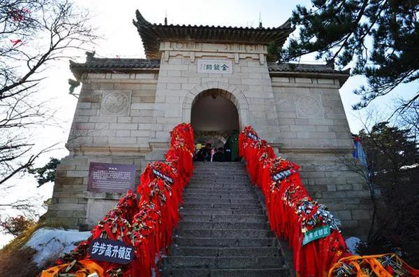 金鎖關(guān)北接五云峰,南控華山主峰,東西兩側(cè)壑深千丈,關(guān)前僅有一米寬的臺階石徑。環(huán)周古松蒼翠,奇石林立,常有祥云環(huán)繞,風(fēng)光非常迤麗。關(guān)內(nèi)關(guān)外登山路兩側(cè)鐵索上情侶鎖、平安鎖,重重疊疊,紅繩彩線迎風(fēng)搖曳,不失為關(guān)前一道美麗的風(fēng)景線。在這里,鎖住你對愛情的誓言,表達你堅如磐石的愛情忠貞!
