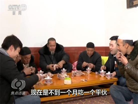 吃平伙是東鄉(xiāng)族老百姓的一個(gè)傳統(tǒng),就是大家買一只羊,平攤價(jià)格以后搭伙吃羊肉。過(guò)去,只有家里娶媳婦、蓋房子這樣的大事,才能吃個(gè)平伙?,F(xiàn)在生活好了,家里請(qǐng)客的時(shí)候也吃平伙,今天,馬麥志要請(qǐng)客,不用大家出份子錢(qián)了。他說(shuō)大兒子在外面打工,自己在干清潔工,媳婦在車間里面炸油馃馃,收入應(yīng)該有3萬(wàn)多元。