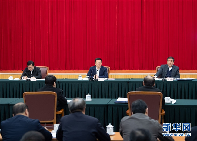 2月12日,中共中央政治局常委、國(guó)務(wù)院副總理韓正到國(guó)家發(fā)展改革委調(diào)研并主持召開座談會(huì)。 新華社記者 申宏 攝