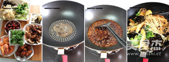 24.將準(zhǔn)備好的所有食材全部倒入鍋中