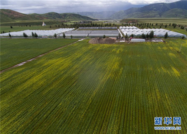 這是理塘縣濯桑鄉(xiāng)濯桑現代農業(yè)雙創(chuàng)中心(2018年8月11日無人機拍攝)。理塘縣甲洼鎮(zhèn)、濯桑鄉(xiāng)等鄉(xiāng)鎮(zhèn)集中使用產業(yè)扶持資金,跨村集中抱團發(fā)展設施蔬菜大棚,讓貧困人口在園區(qū)獲得穩(wěn)定收益。新華社記者 江宏景 攝