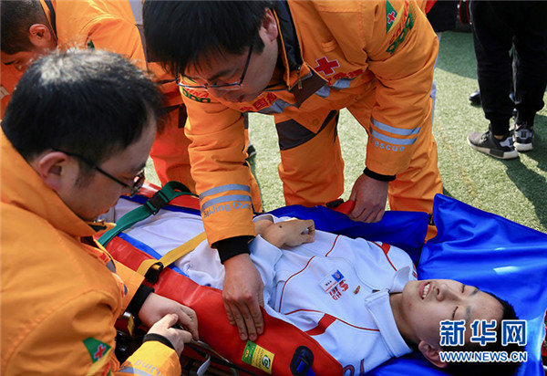 活動現(xiàn)場還設(shè)置了應(yīng)急救援演練,活動安排一架專業(yè)航空醫(yī)療救援直升飛機(jī)、兩輛救護(hù)車和一輛安全地震模擬車參與。