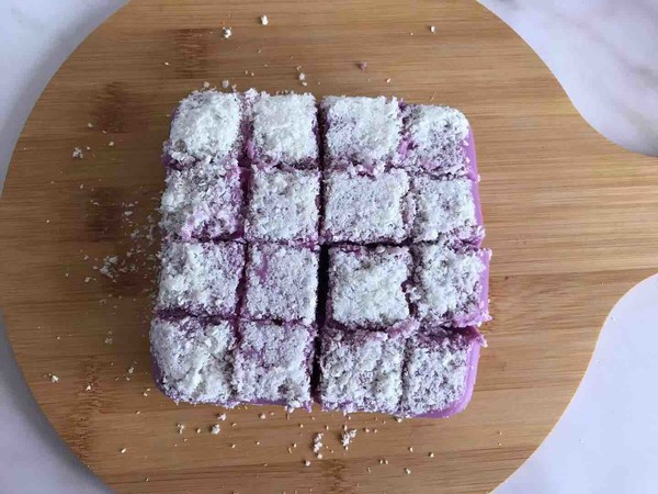 11.將做好的紫薯泥倒入碗中,抹平,入冰箱冷藏2小時(shí)
