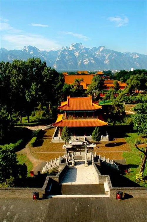 西岳廟是供奉西岳大帝華山神的廟宇,廟始建于漢武帝時代,后成為歷代帝王祭祀華山神的場所。西岳廟坐北朝南,廟門正對華山。在由北至南的中軸線上依次排列著灝靈門、五鳳樓、欞星門、金城門、灝靈殿、寢宮、御書樓、萬壽閣。整個建筑呈現(xiàn)前低后高的格局。西岳廟建筑相當宏偉。五鳳樓建于高臺上,高達20多米,登樓望華山,五峰歷歷在目。正殿灝靈殿建筑為琉璃瓦單檐歇山頂,坐落于寬廣的“凸”字型月臺之上,面寬7間,進深5間,周圍有回廊,氣勢宏偉,歷代帝王祭祀華山多住于此。殿內(nèi)懸掛有康熙、道光、慈禧所題“金天昭端”、“仙云”等匾額。整個院落林木繁茂,山石嶙峋,饒有園林之趣。