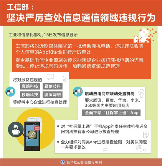 據(jù)了解,工信部將對涉及違規(guī)的壹鴿科技、易龍芯科、秒嘀科技和凌沃網(wǎng)絡(luò)等呼叫中心企業(yè)進(jìn)行核查處理。同時,啟動應(yīng)用商店聯(lián)動處置機(jī)制,要求騰訊、百度、華為、小米、360等國內(nèi)主要應(yīng)用商店全面下架“社保掌上通”App,對“社保掌上通”手機(jī)App的責(zé)任主體杭州遞金網(wǎng)絡(luò)科技有限公司進(jìn)行核查處理,并全力組織對同類App進(jìn)行排查檢測,對類似問題一并要求整改。