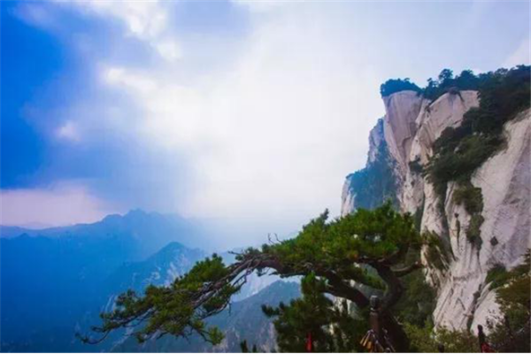 古人云:“山無(wú)石不奇,無(wú)純石不大奇”。華山奇石當(dāng)屬“大奇”,雄奇瑰麗,風(fēng)姿獨(dú)具,能令天下人“一見(jiàn)換神骨”。唐詩(shī)人孟郊《游華山云臺(tái)觀》詩(shī)贊華山是“華岳獨(dú)靈異,草木恒新鮮。山盡五色石,水無(wú)一色泉”。華山的主體是由一塊純粹完整的巨型花崗巖構(gòu)成,呈柱體狀,巍然屹立,四方如削,峭陡挺拔,高聳云天。正如朱德詩(shī)中所說(shuō)“華山直挺黃河邊,雄視東方函谷關(guān)”,大石大奇的壯觀氣勢(shì)可謂舉世獨(dú)具。其次,它的三座主峰合攏相擁而形成的蓮花狀山勢(shì),也是“石之大奇”的展現(xiàn)。前人說(shuō)三峰“一石以為莖,二峰以為葉”,形象地狀摹出了華山三峰形似蓮花的狀態(tài)和高表云天,怒放群山的博大與宏偉。另外,由于地殼的裂變斷震,許多似人似物的象形奇石散落于景區(qū)各處,形成了獨(dú)具特色,饒有興趣的奇石景觀,而且這些奇石大多都伴隨著一個(gè)神奇而美麗的傳說(shuō)故事,更增添了這類(lèi)景觀的生動(dòng)趣味和神秘色彩??梢哉f(shuō),華山之石,無(wú)石不奇。