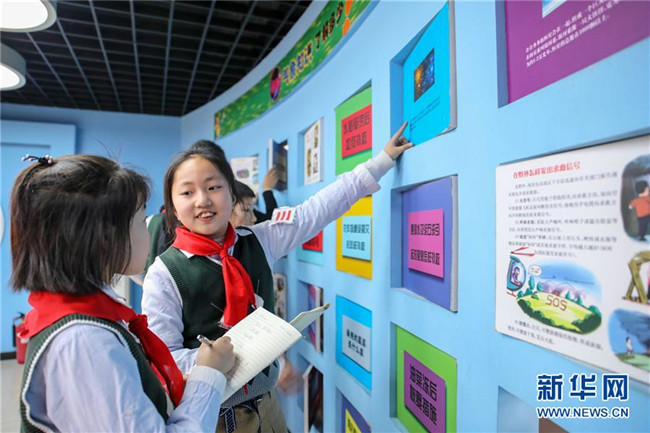 當日,安徽省合肥市合作化南路社區(qū)組織第六十七中學小學部學生來到市氣象科普館,學習氣象科普知識,迎接3月23日世界氣象日的到來。 新華社記者 曹力 攝