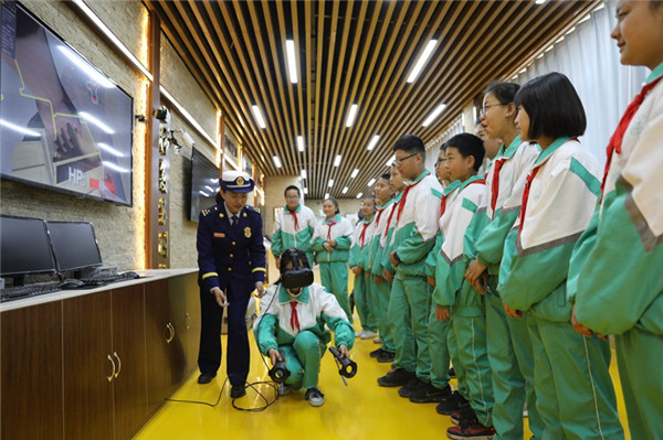 在寧夏銀川閱海九中,一堂生動(dòng)有趣的消防示范課吸引了學(xué)生們觀看。學(xué)校老師結(jié)合網(wǎng)上流行的“找茬”游戲,繪制了一幅消防漫畫圖,鼓勵(lì)學(xué)生們走上講臺,開動(dòng)腦筋,查找漫畫里的消防安全隱患。在寧夏中小學(xué)消防科普體驗(yàn)館里,一處VR虛擬體驗(yàn)區(qū)吸引了不少學(xué)生前來參觀和體驗(yàn)!計(jì)算機(jī)模擬生成多類“火災(zāi)現(xiàn)場”環(huán)境,參加體驗(yàn)的學(xué)生只要戴上眼鏡,身處虛擬的“火災(zāi)現(xiàn)場”,通過頭和手等身體部位和傳感器的配合,就能模擬體驗(yàn)一把“滅火”和火場逃生!