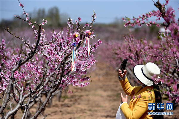 仲春時(shí)節(jié),山東省臨沂市郯城縣馬頭鎮(zhèn)“農(nóng)家花園”里桃花正艷,吸引游客前來踏青賞花。近年來,郯城縣農(nóng)民通過流轉(zhuǎn)土地、復(fù)耕開發(fā)等形式創(chuàng)辦多個(gè)集賞花采摘、旅游觀光、休閑娛樂為一體的花園式農(nóng)場,帶動(dòng)當(dāng)?shù)剜l(xiāng)村旅游發(fā)展。