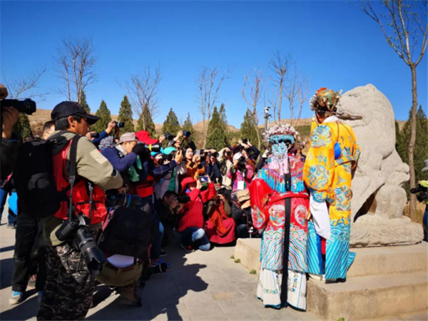 上午眾多攝影愛好者們齊聚蒲城泰陵景區(qū)大唐梨園廣場(chǎng),進(jìn)行以戲曲表演為主題一場(chǎng)的拍攝……