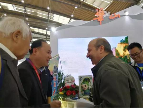 會(huì)上,華山管委會(huì)常務(wù)副主任郭文平、華山管委會(huì)黨工委委員張永江、華山管委會(huì)文物旅游處副處長(zhǎng)王領(lǐng)娣一行來(lái)到展臺(tái)視察工作,并在現(xiàn)場(chǎng)與市民互動(dòng),郭文平主動(dòng)當(dāng)起了華山講解員,為前來(lái)咨詢的市民答疑解惑,宣傳華山,贈(zèng)送禮物。
