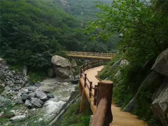 仙峪山奇水秀,峪道崎嶇幽深,怪石嶙峋,景色秀麗,景點(diǎn)多達(dá)30余處。有龍頭溝、蛤蟆溝、石板溝、三耳岔、河北頭可駐足,有白龍?zhí)丁⒛裉?、車箱潭、仙浴潭、仙人瀑等潭瀑,有斜嶺、白羊峰、車箱崖等峰嶺,有邢家姑姑祠、白雀寺、神宴林、仙樂林等佳處,有龜蛇鎖車箱、吊鐘、相公帽、飲馬槽等奇石。