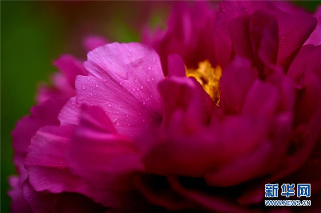 這是在石家莊市正定榮國(guó)府影視基地拍攝的牡丹花(4月13日攝)。時(shí)下,河北石家莊正定榮國(guó)府影視基地內(nèi)的牡丹花次第開(kāi)放,在春雨的滋潤(rùn)下顯得格外晶瑩剔透、美麗嬌艷。 新華社發(fā)(陳其保 攝)