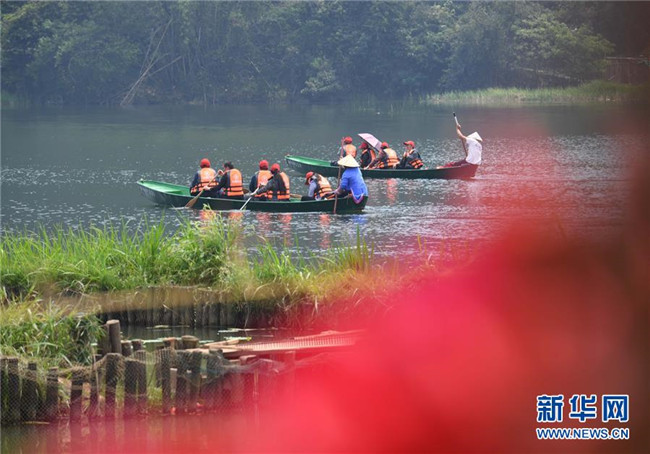 4月14日,游人在普者黑國(guó)家濕地公園蕩舟觀(guān)景。 位于云南省文山壯族苗族自治州丘北縣的普者黑國(guó)家濕地公園山水秀麗、風(fēng)景如畫(huà),吸引人們前來(lái)休閑度假。 新華社記者楊宗友攝