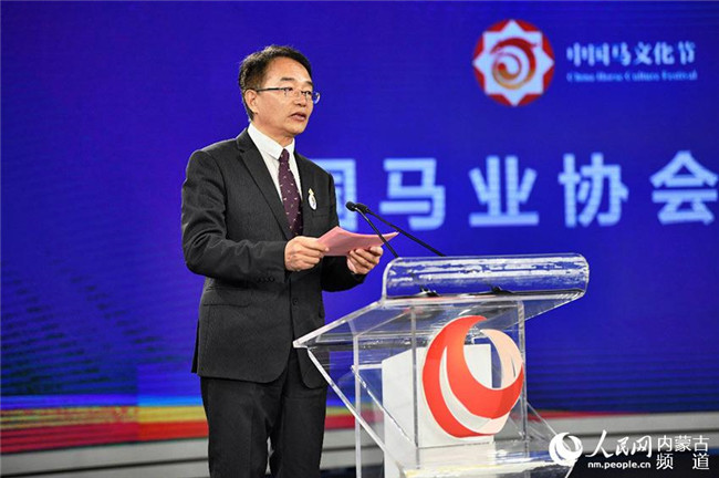 內(nèi)蒙古新華發(fā)行集團(tuán)董事長(zhǎng)冀學(xué)博發(fā)布第二屆中國馬文化節(jié)暨首屆內(nèi)蒙古國際馬文化博覽會(huì)賽馬賽事活動(dòng)。
