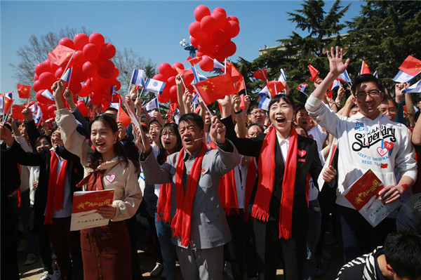 校友從各地趕來參加校慶活動(周學飛/攝)