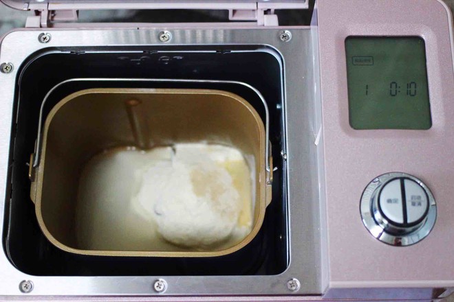 2.把稱重的面粉和清水,放入東菱面包機里,加入酵母后,啟動和面模式。