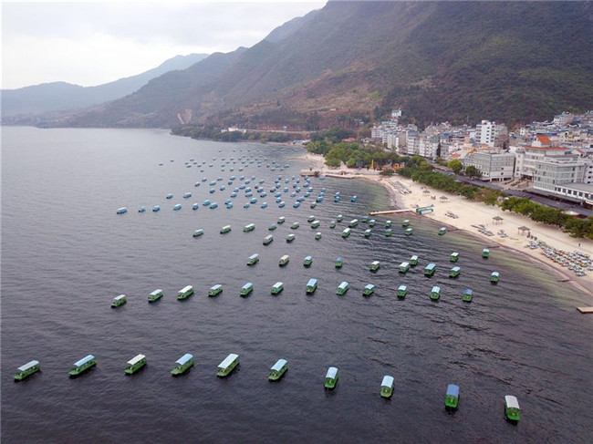 這是云南省玉溪市撫仙湖(2018年4月6日無(wú)人機(jī)拍攝)。新華社記者 才揚(yáng) 攝