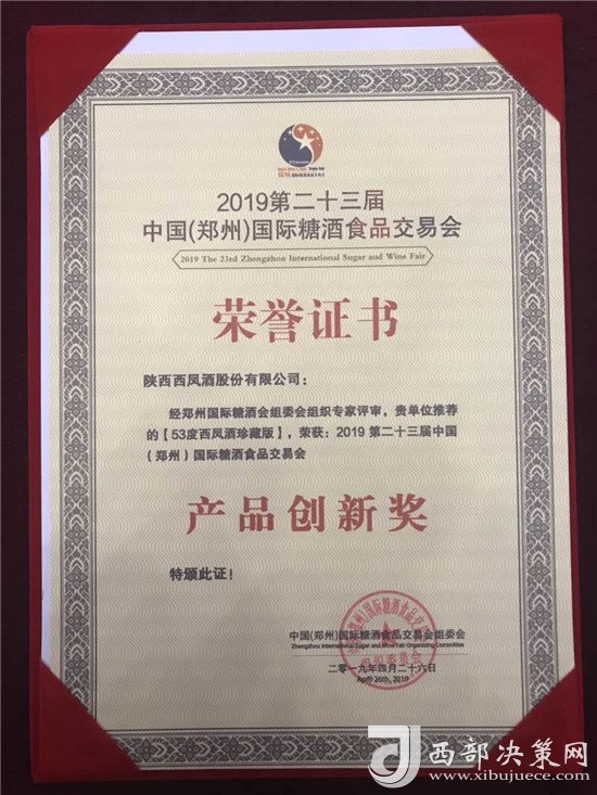 在下午舉行的糖酒會重磅活動評優(yōu)表彰大會上,西鳳酒一舉攬獲大獎,出彩鄭州國際糖酒會:53度西鳳酒珍藏榮獲“產(chǎn)品創(chuàng)新獎”,贏得了社會和行業(yè)的廣泛贊譽。