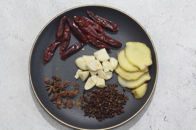 小龍蝦500克 姜片6片 蒜5顆 香蔥適量 洋蔥半個 香菜一把 花椒5克 干辣椒10個