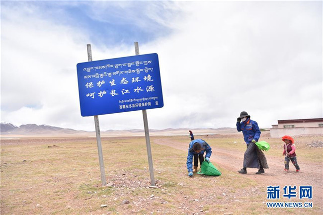 為保護(hù)長(zhǎng)江源生態(tài)環(huán)境,西藏安多縣瑪曲鄉(xiāng)每周都會(huì)在全鄉(xiāng)范圍內(nèi)組織“保護(hù)長(zhǎng)江源”撿拾垃圾活動(dòng),由各村黨員志愿者帶頭,生態(tài)巡護(hù)員參與,群眾自愿參加。這項(xiàng)環(huán)保活動(dòng)于2016年發(fā)起,如今已堅(jiān)持3年。