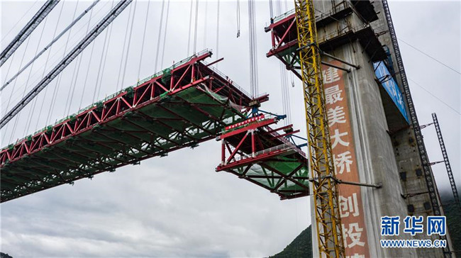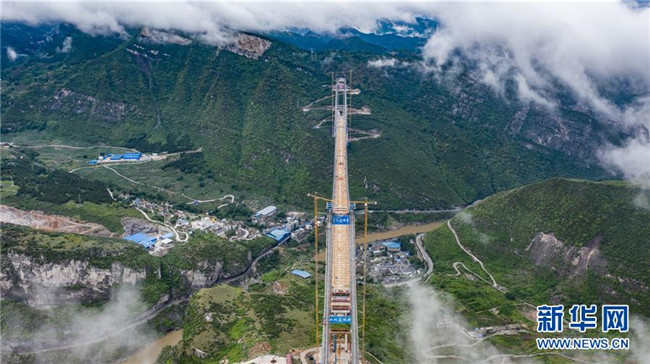正在拼裝最后一片鋼桁梁的赤水河大橋(5月30日無人機拍攝)。新華社記者 陶亮 攝