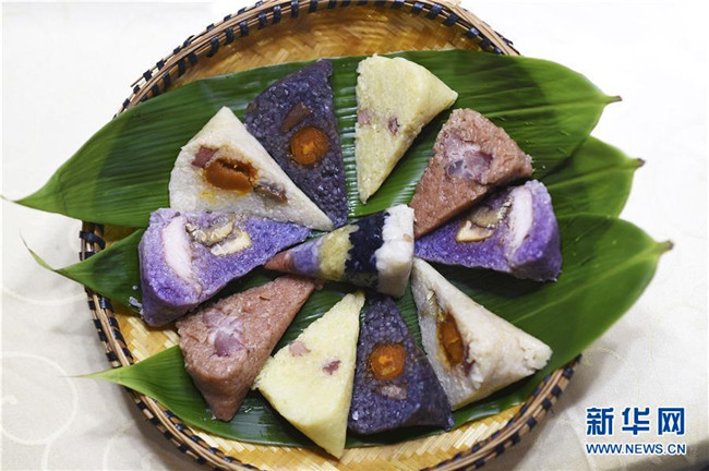 端午節(jié)將至,貴州省黔東南苗族侗族自治州臺(tái)江縣粽子加工企業(yè)加緊制作具有當(dāng)?shù)靥厣奈宀属占案魇紧兆?,滿足市場需求。