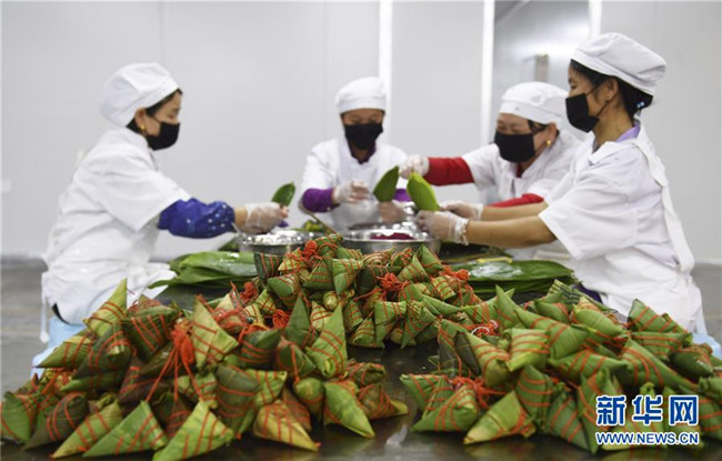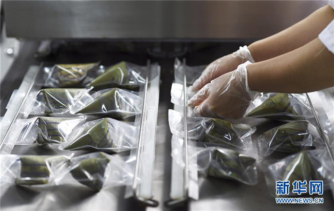 這是在臺(tái)江縣一家食品生產(chǎn)企業(yè)拍攝的制作好的粽子(6月2日攝)。新華社發(fā)(劉開福 攝)