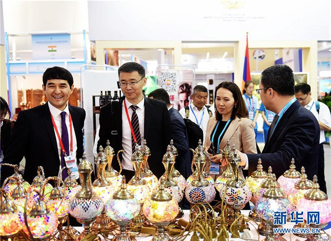 5月24日,在青島膠州方圓體育館,嘉賓在上海合作組織國際投資貿(mào)易博覽會(huì)上交流。新華社記者 李紫恒 攝
