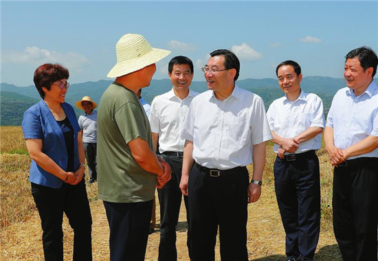 6月13日,省委書記胡和平在千陽縣城關鎮(zhèn)新民村了解夏收和強農(nóng)惠農(nóng)政策落實情況。 記者 宋紅梅攝