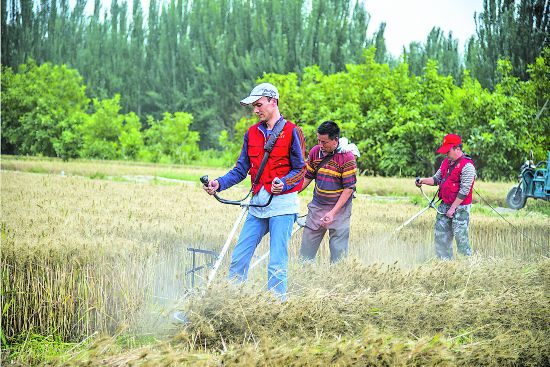 6月13日,新疆洛浦縣衛(wèi)生健康委員會(huì)駐該縣多魯鄉(xiāng)墩阿孜瑪村“訪惠聚”工作隊(duì),帶領(lǐng)志愿者服務(wù)隊(duì)幫助村民收割小麥。 據(jù)了解,洛浦縣今年小麥種植面積18萬(wàn)畝,截至目前已收割7萬(wàn)余畝。買(mǎi)買(mǎi)提艾力·艾尼瓦爾 攝