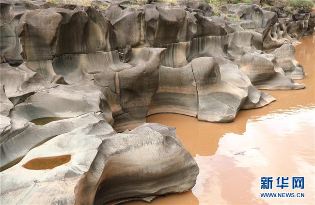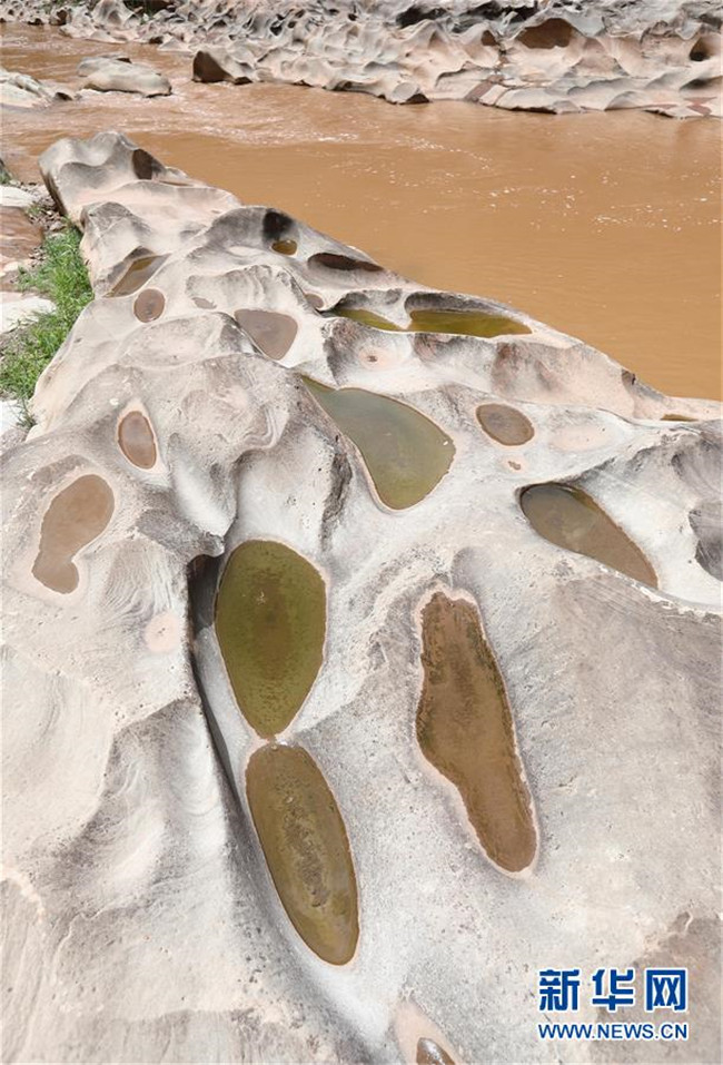 這是6月16日拍攝的四川省會(huì)東縣鲹魚(yú)河鐵柳鎮(zhèn)火石村段的壺穴地貌。