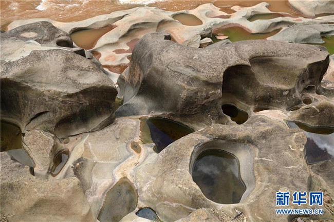 在四川省會(huì)東縣鲹魚(yú)河鐵柳鎮(zhèn)火石村段,河谷兩岸有一處壺穴地貌。2018年經(jīng)地質(zhì)專家勘測(cè),這處壺穴地貌河床寬約50米,面積約3萬(wàn)平方米。這里的壺穴大小不一、深淺不一,其范圍大、數(shù)量多、形狀美,極其罕見(jiàn),吸引不少地質(zhì)專家和游客前來(lái)。新華社記者江宏景攝