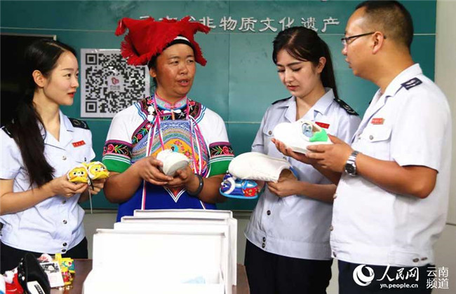 6月18日,恰逢硯山縣稅務(wù)局上門(mén)服務(wù),王陸芬向稅務(wù)人員介紹產(chǎn)品。攝影:陸安恒