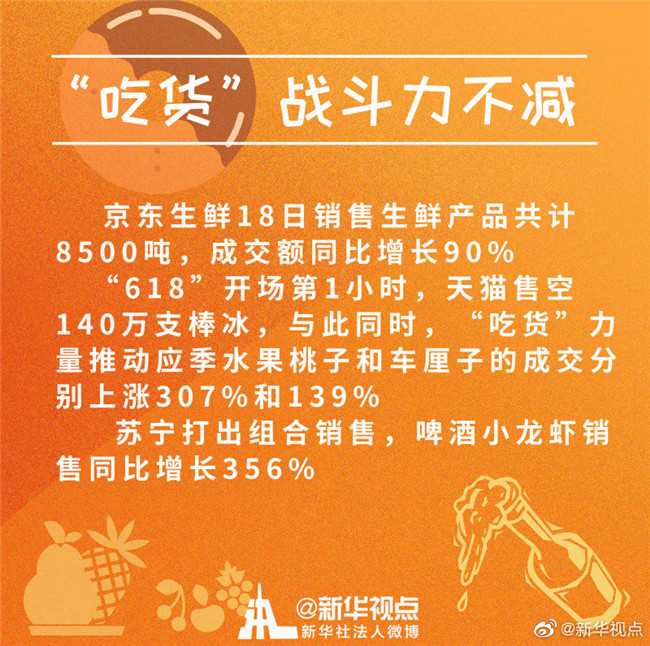 京東生鮮18日銷售生鮮產(chǎn)品共計8500噸,成交額同比增長90%。6月16日第1小時,天貓售空140萬支棒冰,“吃貨”力量推動應(yīng)季水果桃子和車厘子成交額分別上漲307%和139%。蘇寧打出組合銷售,啤酒小龍蝦銷售同比增長356%……