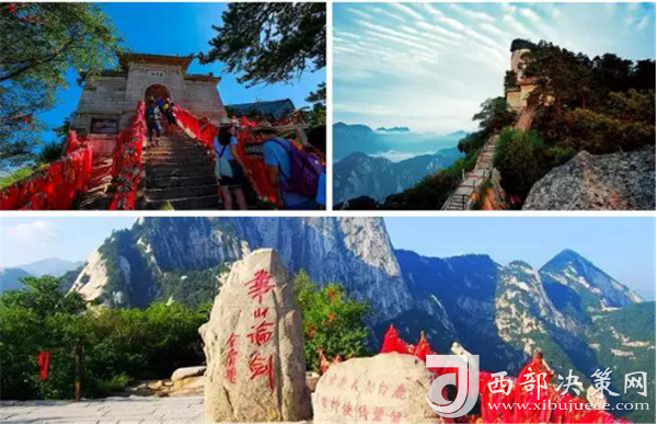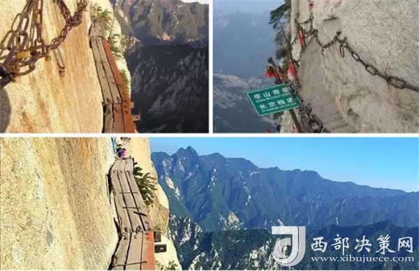 華山著名景區(qū)多達(dá)210余處,有凌空架設(shè)的長(zhǎng)空棧道,三面臨空的鷂子翻身,以及在峭壁絕崖上鑿出的千尺幢、百尺峽、老君犁溝等,其中華岳仙掌被列為關(guān)中八景之首。