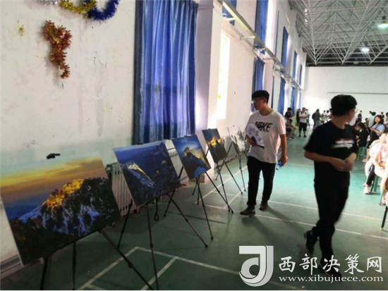 “演繹經(jīng)典”校園活動(dòng)開場前,舞臺(tái)前方的投影大屏循環(huán)播放華山風(fēng)光宣傳片,奇險(xiǎn)峻秀的大美華山風(fēng)光引得現(xiàn)場觀眾贊嘆不絕。舞臺(tái)下方分別通過華山風(fēng)光攝影展、活動(dòng)展架等形式展示了華山四季的絕美風(fēng)光,吸引眾多師生駐足觀看。