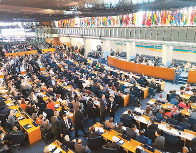 6月23日在意大利羅馬召開(kāi)的聯(lián)合國(guó)糧食及農(nóng)業(yè)組織大會(huì)第41屆會(huì)議會(huì)場(chǎng)。新華社記者 陳占杰攝