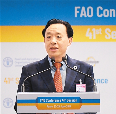 6月23日,聯(lián)合國(guó)糧食及農(nóng)業(yè)組織大會(huì)第41屆會(huì)議在意大利首都羅馬召開(kāi),中國(guó)農(nóng)業(yè)農(nóng)村部副部長(zhǎng)屈冬玉在首輪選舉中以高票當(dāng)選糧農(nóng)組織新任總干事,成為該組織歷史上首位中國(guó)籍總干事。