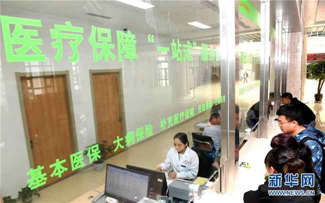 人們在陜西省延安市中醫(yī)醫(yī)院醫(yī)保結算處辦理業(yè)務(5月6日攝)。新華社記者 劉瀟 攝