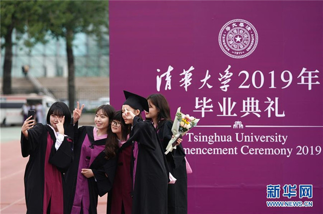 7月7日,清華大學(xué)2019年本科畢業(yè)生在畢業(yè)典禮上合影。
