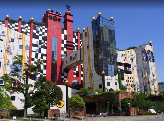 而在《名偵探柯南》里出現(xiàn)的垃圾處理廠也有真實場景。由宮崎駿的偶像百水先生進(jìn)行外觀設(shè)計的大阪舞洲島垃圾處理廠,遠(yuǎn)遠(yuǎn)看去仿佛游樂場,不知情的人絕不會把它和垃圾聯(lián)系在一起。處理廠干凈整潔、色彩明亮得恍若安徒生的童話世界,紅黃的條紋象征著燃燒的火焰,形態(tài)各異的可愛窗子與爬山虎裝點(diǎn)著墻壁,標(biāo)志性的長管煙囪令人想起長發(fā)公主的城堡……