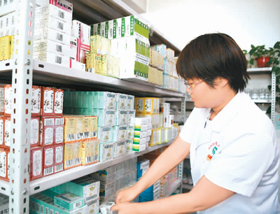 近年來(lái),陜西省西安市積極推進(jìn)醫(yī)聯(lián)體建設(shè),全市已建成涵蓋80所二級(jí)醫(yī)療機(jī)構(gòu)和140所基層醫(yī)療機(jī)構(gòu)的醫(yī)聯(lián)體46個(gè),形成了上下聯(lián)動(dòng)的分級(jí)診療就醫(yī)模式。圖為5月21日,醫(yī)護(hù)人員在陜西省西安市國(guó)際港務(wù)區(qū)新筑社區(qū)衛(wèi)生服務(wù)中心為患者取藥。新華社記者 張博文攝
